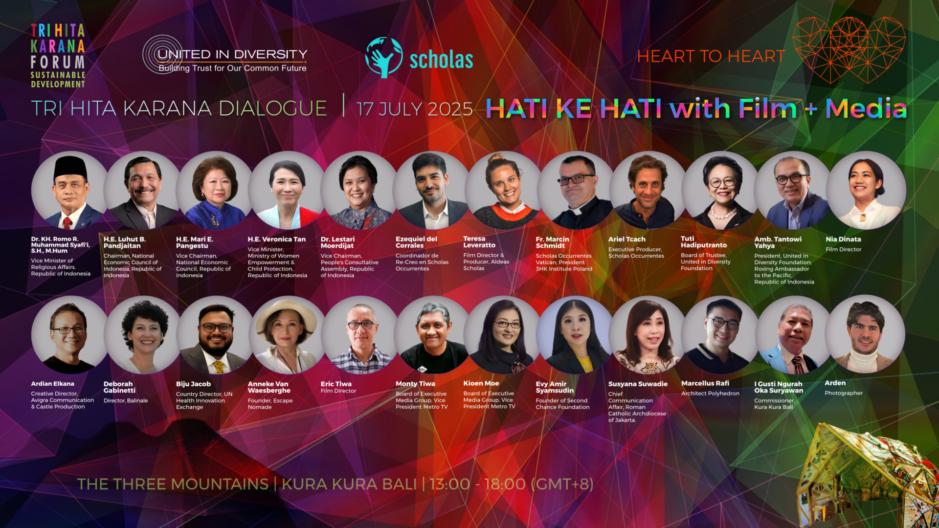 The inaugural Tri Hita Karana Forum on Sustainable Development was launched at the Bali APEC in 2013. The second Tri Hita Karana Forum for Sustainable Development was held on 9-11 October 2018 around the IMF WB Annual Meetings and endorsed by the President of the Republic of Indonesia Joko Widodo.