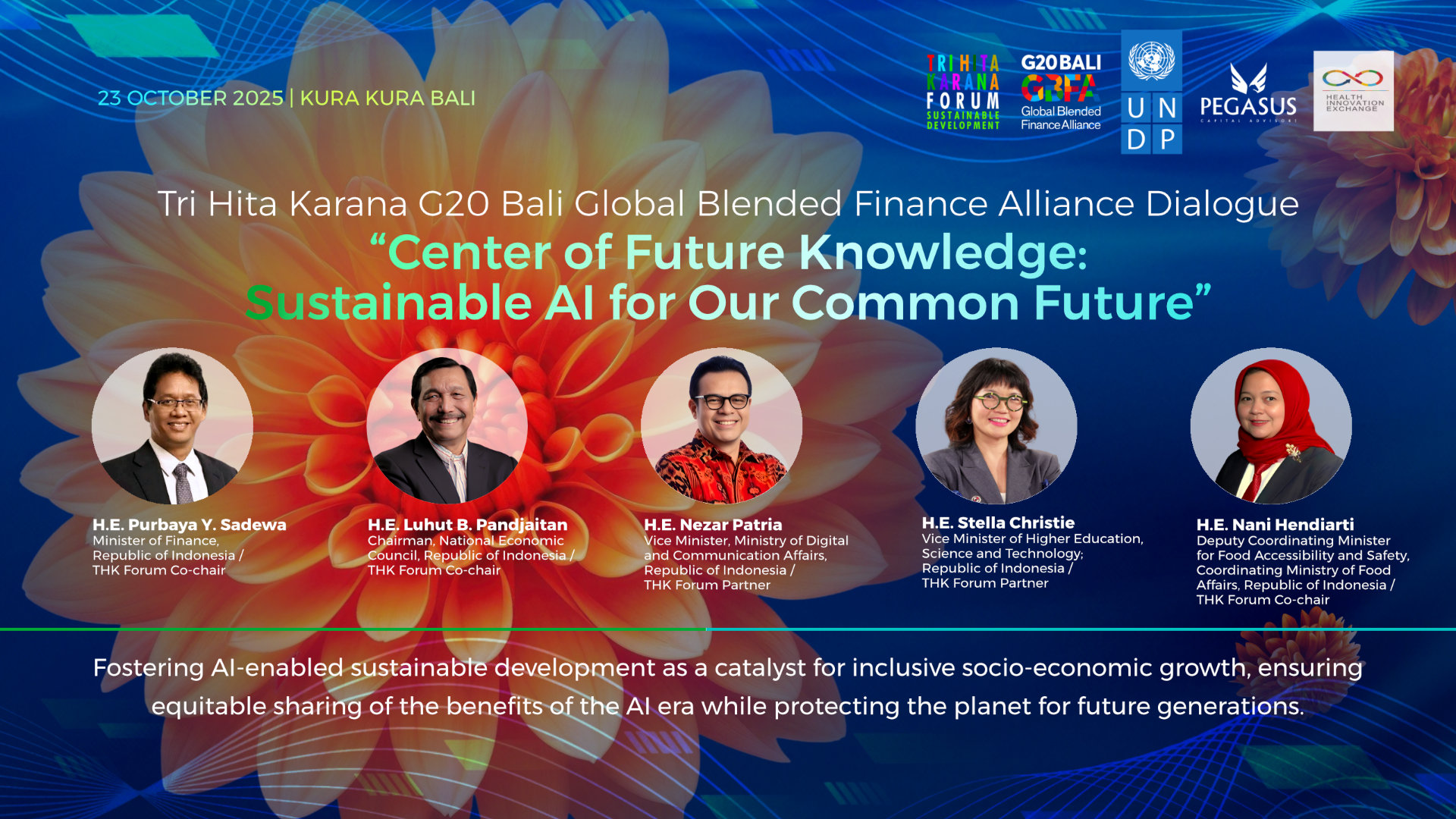 “Indonesia takes pride in playing a global role to partner with business sectors, multilateral institutions, philanthropy, local and international players across sectors to move forward the blended finance and innovation agenda with the Global Blended Finance Alliance and Tri Hita Karana Center of Future Knowledge in bridging the three harmonies for sustainable development goals.”