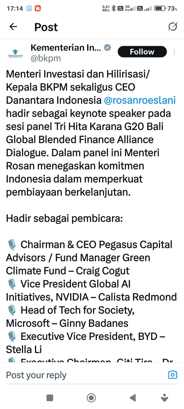 H.E. Rosan P. Roeslani, Minister of Investment and Downstreaming Industry / Head of the Investment Coordinating Board (BKPM), Republic of Indonesia.