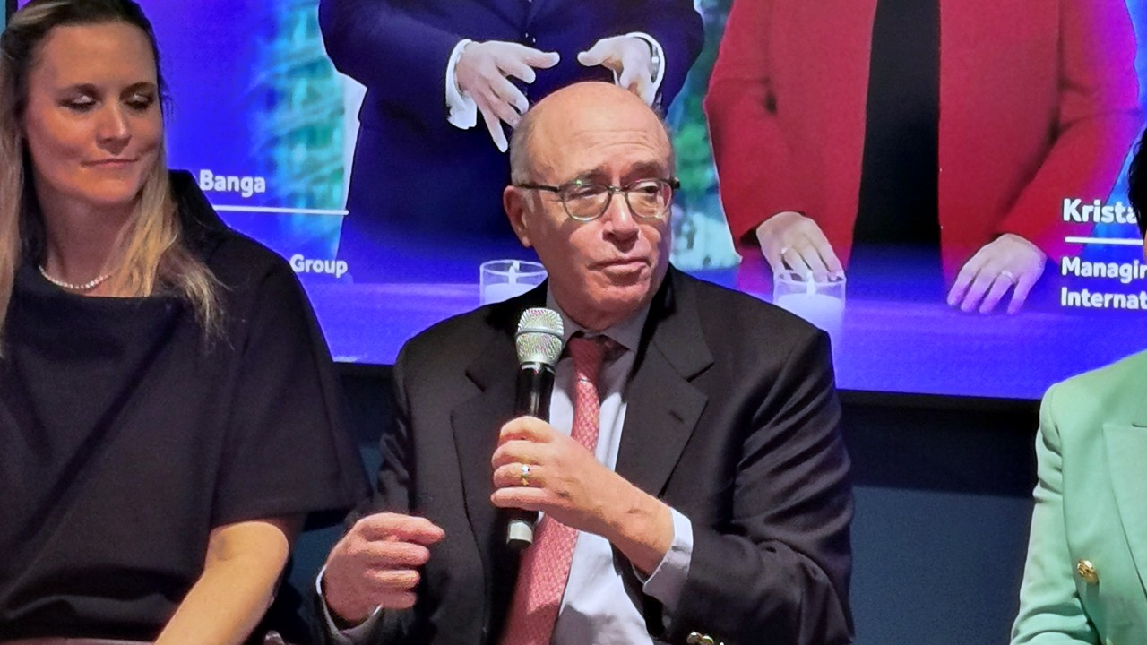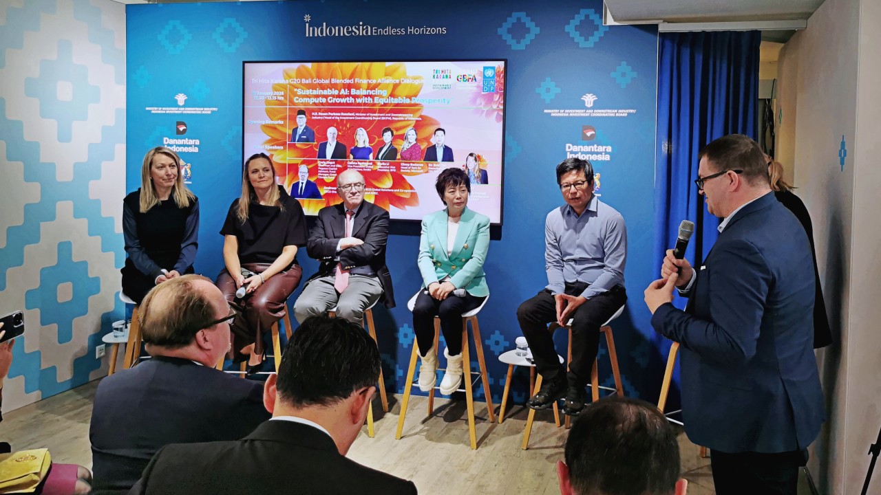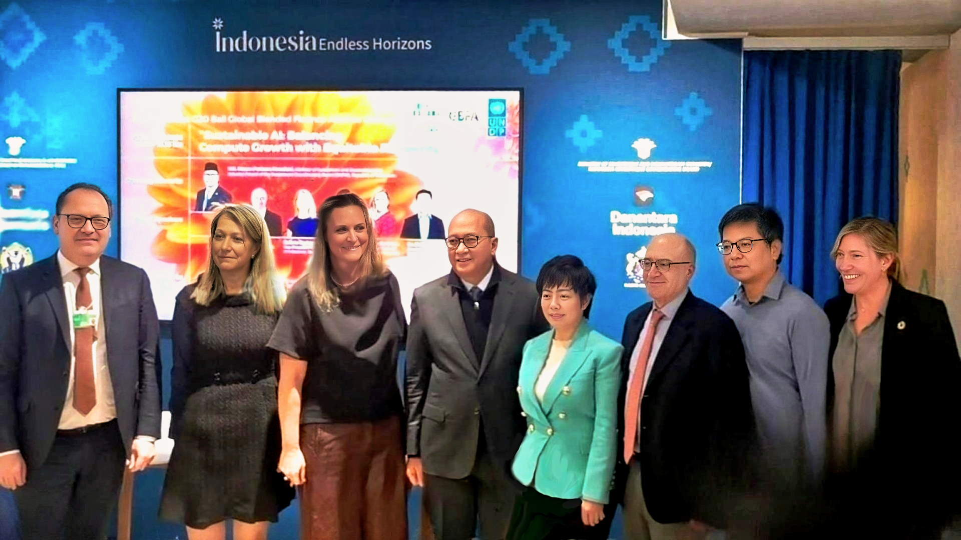 Craig Cogut (Pegasus); Calista Redmond (Nvidia); Ginny Badanes (Microsoft); Stella Li (BYD); Enki Tan (Giti Tires); and moderator Patricia Holly Purcell (UNDP).